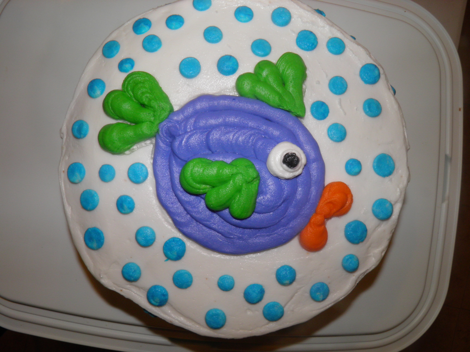 After learning all of the flowers. We were able to practice everything we had learned so far. I made a mini fish cupcake.