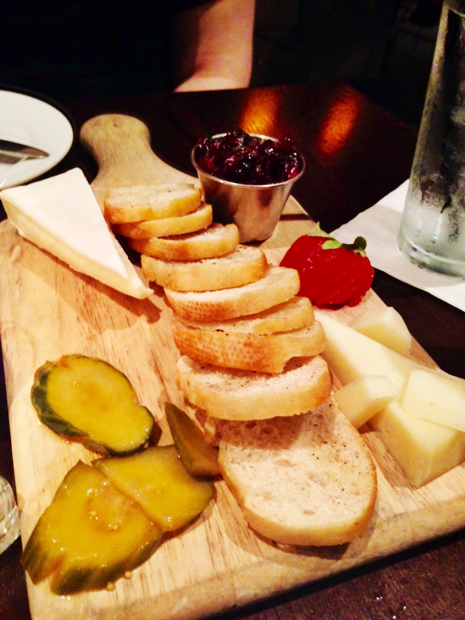 We arrived around 7pm and put our name in, the wait was about 45 minutes, which worked out perfectly since it gave us time to run back to our hotel and drop off the bags of stuff we had bought at the Savannah Bee Company. By the time we got back, our table was ready. We started off by ordering drinks. They have some craft beers on tap, but only a few were local beers. After sampling 1 or 2 beers, we picked a local beer and started looking over the menu. As soon as we saw that we could order a half of the Cheese Board we knew what we were going to get for an appetizer. The half size came with a choice of two cheese (out of the 4 offered) along with a cranberry compote, house spicy pickles, and bread. The portion size was perfect for two people and the pickles perfectly complimented the manchego we had ordered while the cranberries worked great with the brie.