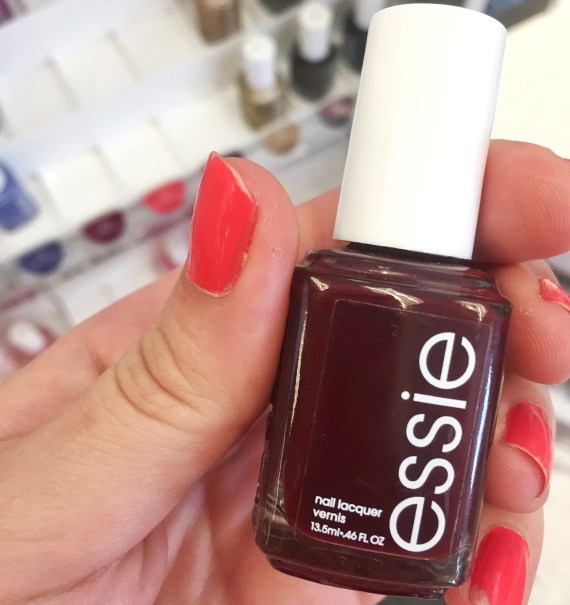 I saw two colors from Essie today one called “Carry On” (a dark reddish-purple) and “Berry Naughty” (a dark dark red wine, shown above) and I think both are going to be perfect colors for fall this year. They have been saying Ox Blood color will be trending this year so either of these colors will be perfect to match your plaid shirts, dark denim and military green jackets.