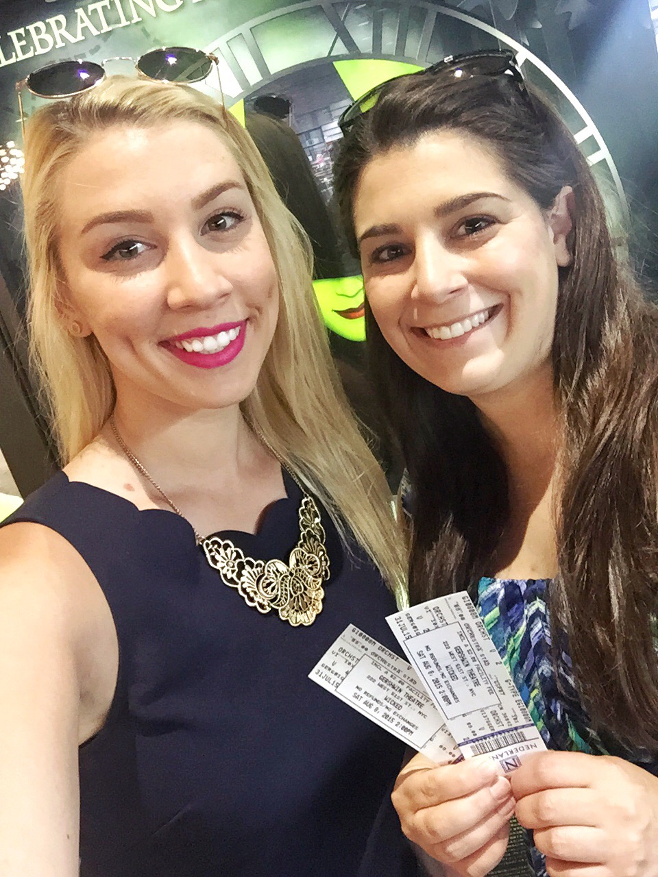 What do you get your fashionista little sister for her college graduation and 22nd birthday? At first thought you might go with anything Lilly Pulitzer, but if that’s what your parent’s plan is, it gets a bit harder. How about tickets to a Broadway show that she has literally been dying to see for 7 years. Yup, that’s definitely a winner! This past weekend Tori & I spent an awesome day in NYC in honor of her graduation and birthday and finally saw Wicked!