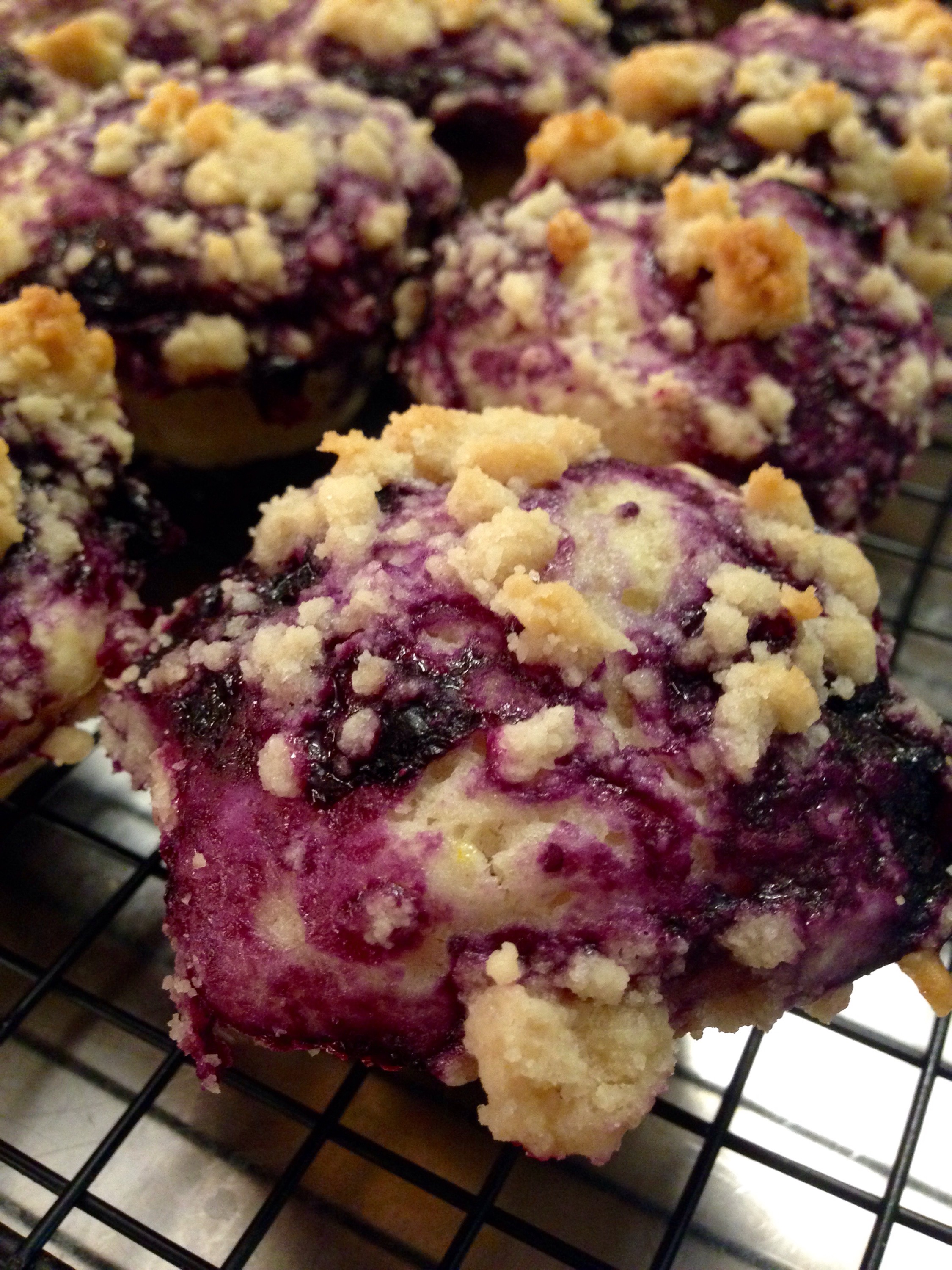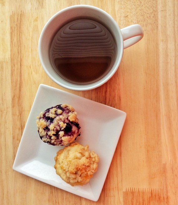 Instead of making full size muffins I opted to make mini muffins without liners. This resulted in muffins that were about half the size of a standard cupcake and the perfect size for a morning snack! While for the most part the recipe was dead on, I did have to add a bit more flour and sugar to the struesel topping in order to get a crumble. Make sure you let the melted butter cool before adding it to the sugar/flour mixture for the best results, but if it still doesn’t start to create crumbs add flour and sugar in the same ratios as the original amount until you end up with pea-sized crumbs.
