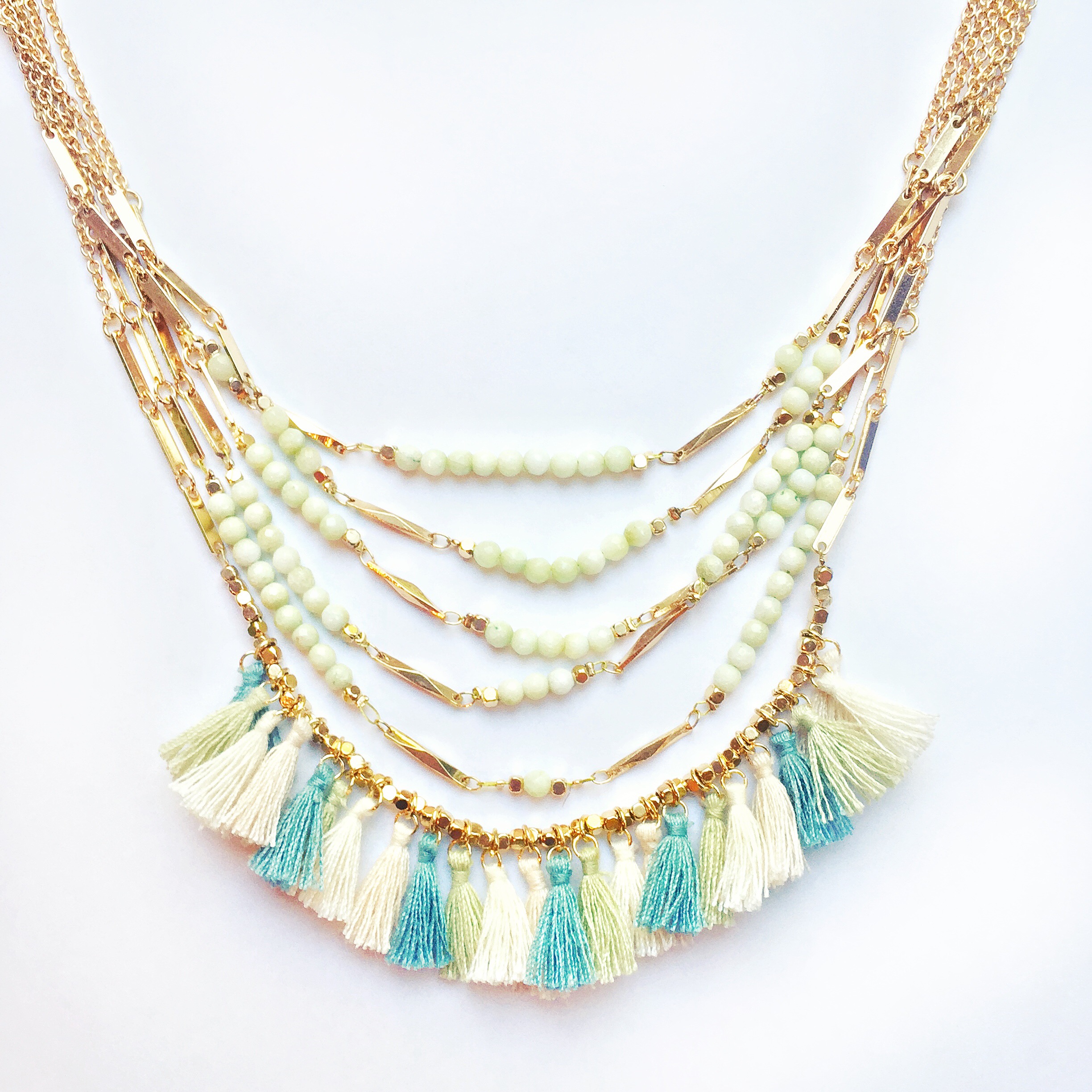 I have a serious addiction to buy statement necklaces! I love how they take a simple sweater and make it look like you really spent time getting ready. The key to getting great statement necklaces is time and patience. Here is the best example, I was at T.J.Maxx last week with my Mom looking at a few things when I came across this GORGEOUS gold and light blue/mint green layered tassel necklace in the clearance counter. It was priced at $20 which is a great price but for someone with as many statement necklaces as me, it wasn’t really worth it. One week later I was back at the same store and low & behold, the same necklace was there but it was marked down further to $10 which is DEFINITELY worth it! When it comes to buying fashion jewelry getting a good price is really important. A lot of this jewelry isn’t made to last. It will break easier and fade faster than you know. It’s much less upsetting when you didn’t spend a ton on it to begin with. Here are some things I do when looking to buy statement necklaces!