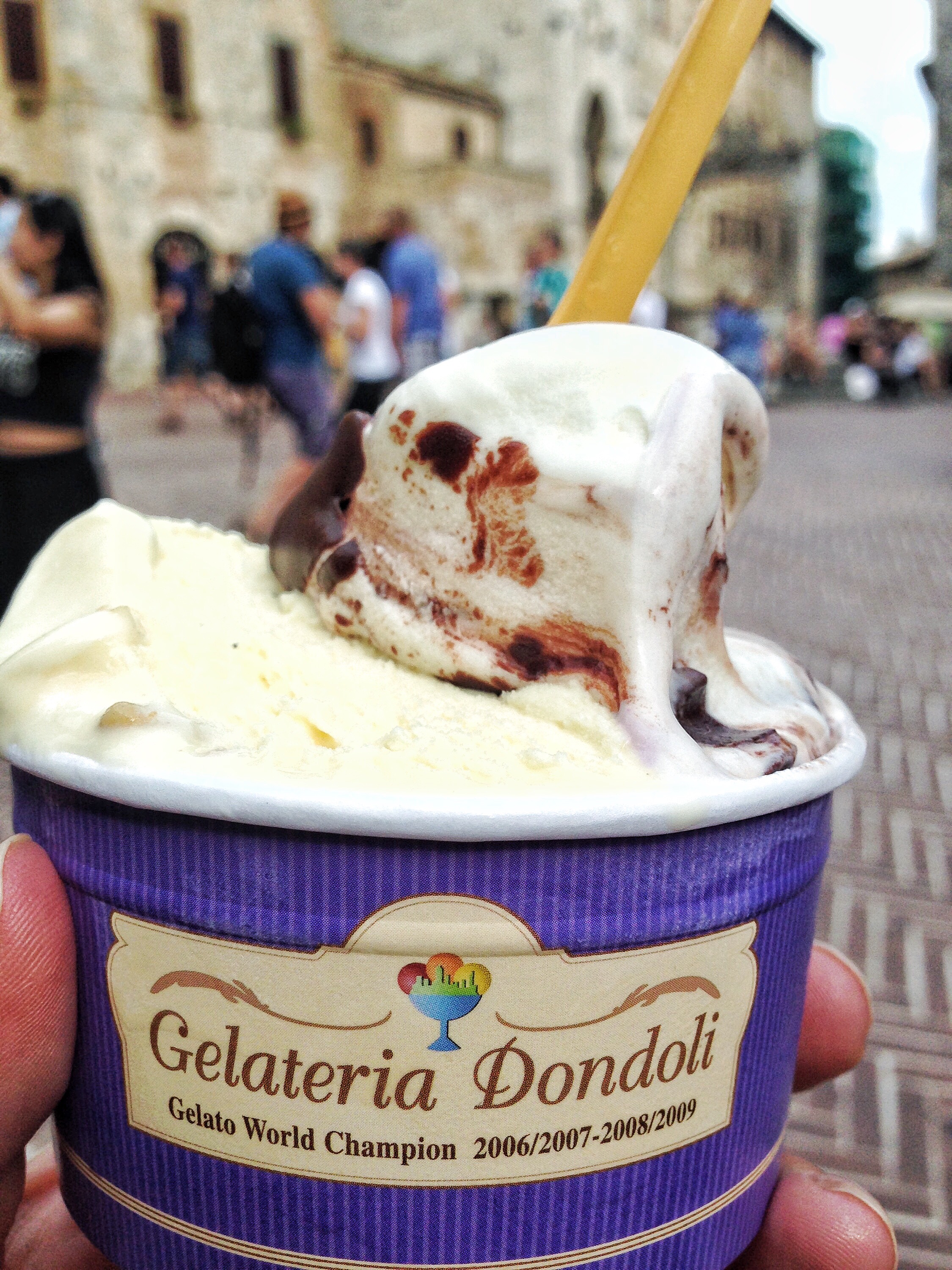 Lunch flew by and the next thing we knew Antonella was telling us it was time to head back to the bus to make the 10 minute drive to San Gimignano. After making sure we all knew which gelateria had won the title World’s Best Gelato in 2009 (hint…their name is not World’s Best Gelato) we were given about an hour and a half of free time to explore. We, of course, started off with gelato and then explored the town including climbing up to Parco della Rocco to get a great view of the city and the surrounding area.
