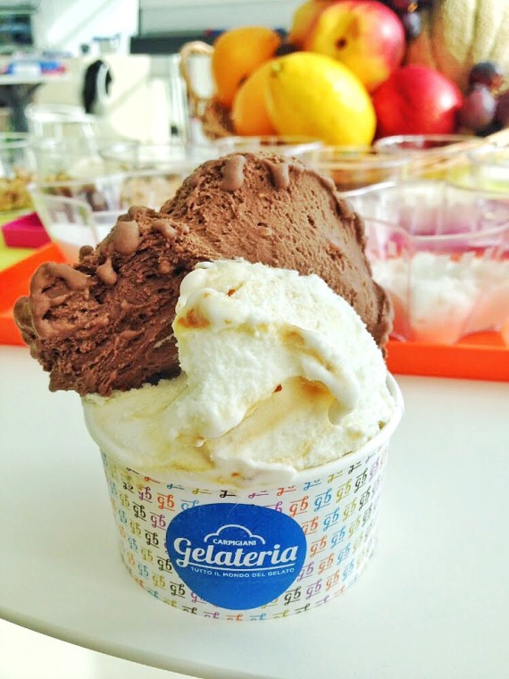Next up on the agenda was the Gelato Museum, which honestly is the major reason I started looking into Bologna in the first place. We hopped on the bus and took the 40 minute ride out to Carpigiani Gelato Museum where we had a 3pm appointment for the Discovering Gelato tour which included not only a guided tour of the museum, but also a tasting and sorbetto making lesson. The museum was very interesting, especially for a foodie and ice cream/gelato lover like me. The highlight, however, was definitely the Sorbetto making lesson which took place in their gelato shop. We started off the lesson by picking out some gelato to try and then dove right into learning about the differences between gelato and ice cream along with the differences between gelatos and sorbettos. Our teacher, Brunella, was awesome and by the end of the lesson, we had tasted quite few different flavors of gelato and sorbetto, including a cantaloupe sorbetto we made during the lesson which was amazing (which coming from someone who doesn’t like cantaloupe is saying a lot). I had also learned about what types of sugar, water, & fruit ratios to use for different types of fruit and that the secret to great gelato is getting the right mix of three sugars: sucrose, glucose, and dextrose.
