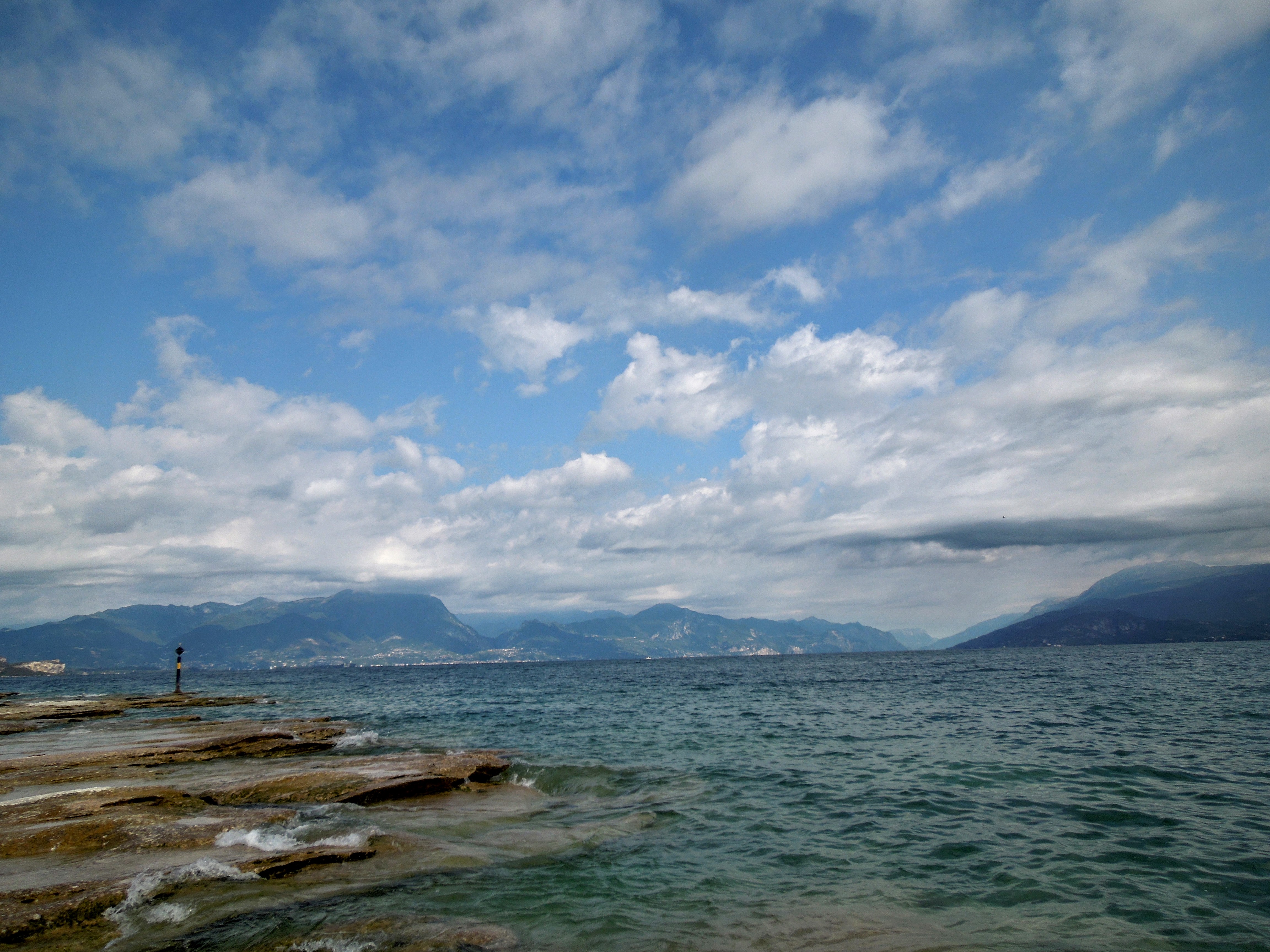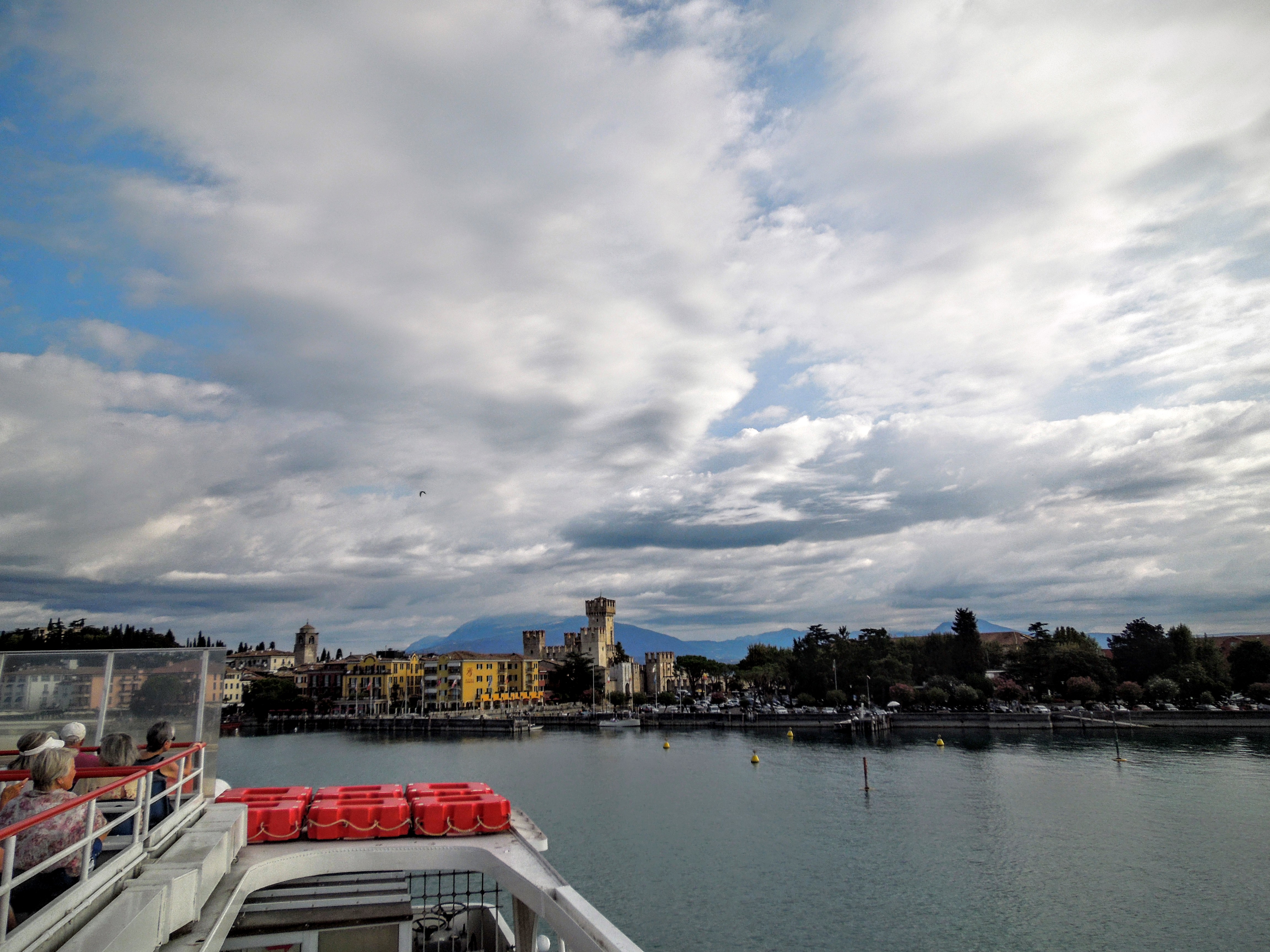 While I was more than happy to take it easy over the weekend, I knew that Monday we were going to have to do something a bit more adventurous in honor of my birthday. After some last minute internet research, we decided that a trip to Lake Garda would give us a chance to see a different side of Italy without spending too much time traveling. We took a 7:30am train out of Segrate and after only one change we made it to Desanzano a little after 9am. As soon as I caught my first glimpse of Lake Garda, I knew we had made a great choice. Between the crystal clear blue water and the mist covered mountains, it was like we were in a fairy tale. While we waited for the next ferry to Sirmione, we grabbed a quick bite to eat for breakfast including my new favorite coffee drink, a marocchino, and a ricotta filled brioche.